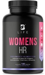 ¡Fuerza y brillo con Womens HR B Life®! Cada cápsula de 500 mg contiene Colágeno Hidrolizado tipo 1 y 3, L-Cisteina, L-Lisina, L-Metionina, Ácido Hialurónico, Zinc, Biotina, Selenio, Vitaminas C y A.